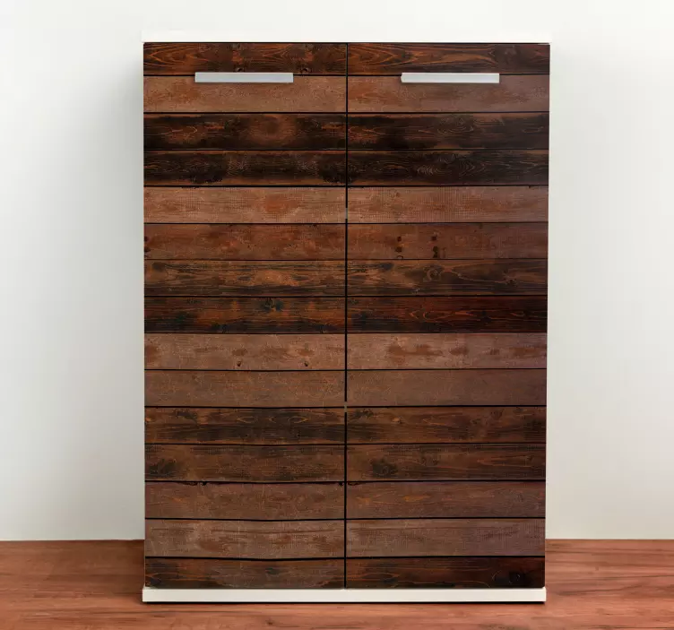 Breng de charme van de natuur in uw huis met onze Meubel sticker rustic wooden cabinet. Dit ontwerp is een prachtige combinatie van bruin, met een horizontale indeling en een textuur die doet denken aan rustiek houten meubilair. De natuurlijke uitstraling van de sticker zorgt ervoor dat elke ruimte een warme en uitnodigende sfeer krijgt, perfect voor een sfeervol interieur.