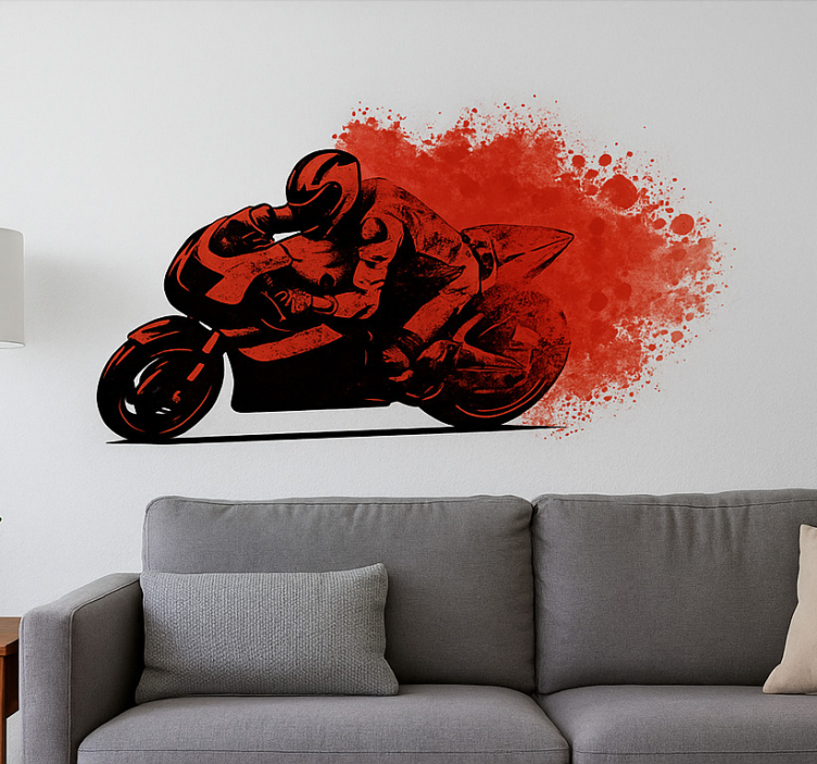 Motor sticker rode spetter rijder