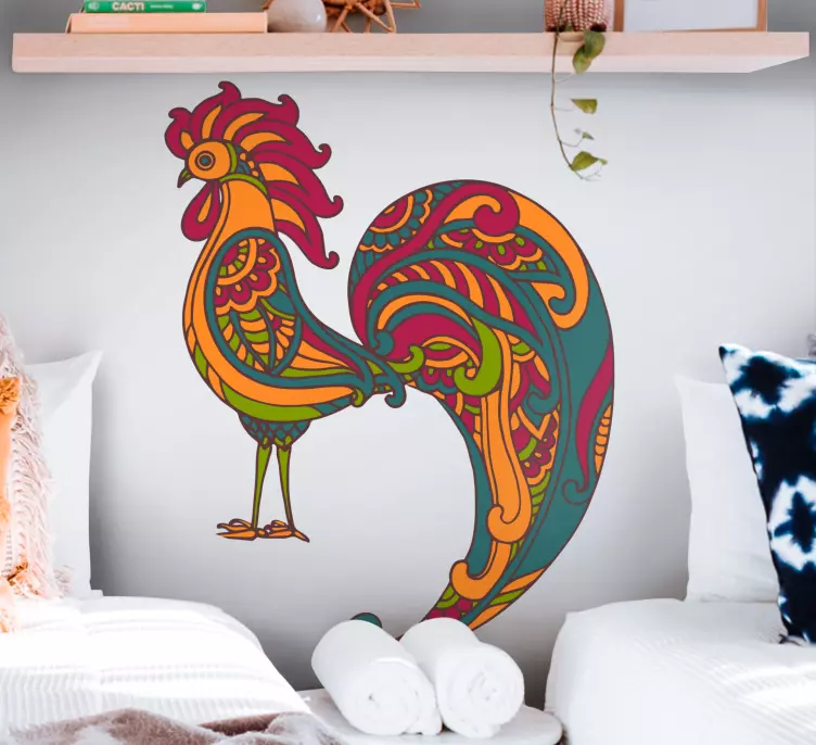 Breng kleur en leven in uw interieur met ons Muursticker boerderijdieren kleurrijk haan ontwerp. Dit prachtige ontwerp toont een haan in een vivid en overladen stijl, perfect voor een boerderij thema. Het etnisch geïnspireerde silhouet voegt een speelse en decoratieve toets toe aan elke ruimte, waardoor het een ideale keuze is voor zowel kinderkamers als gezellige woonruimtes!