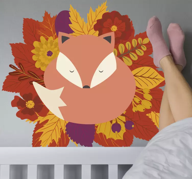 Breng de magie van de natuur in uw huis met onze prachtige Muursticker boerderijdieren vos met bladeren. Dit kleurrijke ontwerp toont een slaperige vos omringd door herfstbladeren en bloeiende bloemen, perfect voor een warme en uitnodigende sfeer. Het ontwerp ademt de schoonheid van het wild uit en laat u genieten van de rustgevende elementen van de natuur, waardoor elke ruimte tot leven komt.