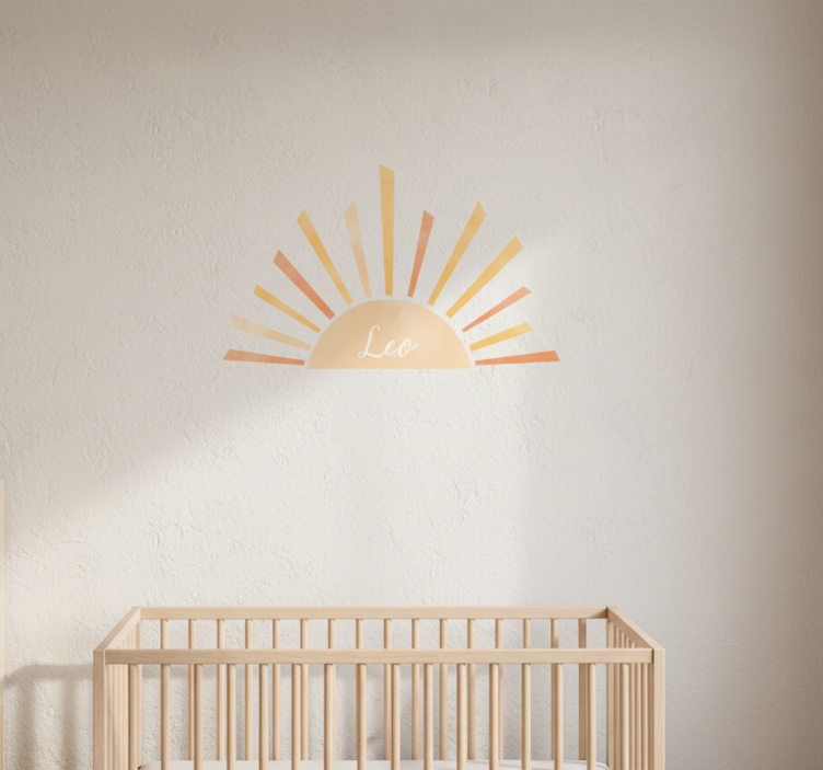 Referentienummer: A54730Breng een frisse uitstraling in uw interieur met onze muursticker gepersonaliseerde opkomende zon. Dit prachtig ontworpen product heeft een satijnen afwerking die schittering voorkomt en de kleuren tot leven brengt, waardoor het een warme en uitnodigende sfeer creëert. De sticker kan eenvoudig worden aangebracht op elk vlak oppervlak en is gemaakt van hoogwaardig vinyl, wat zorgt voor een lange levensduur van 8 tot 10 jaar. Dit maakt het een perfect accent voor elke ruimte!