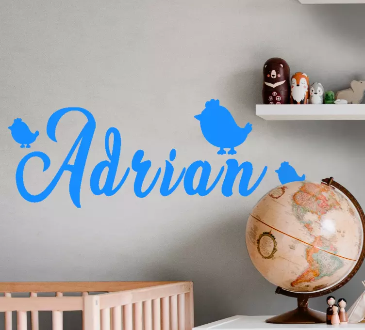 Muursticker kinderkamer gepersonaliseerde naam met vogels