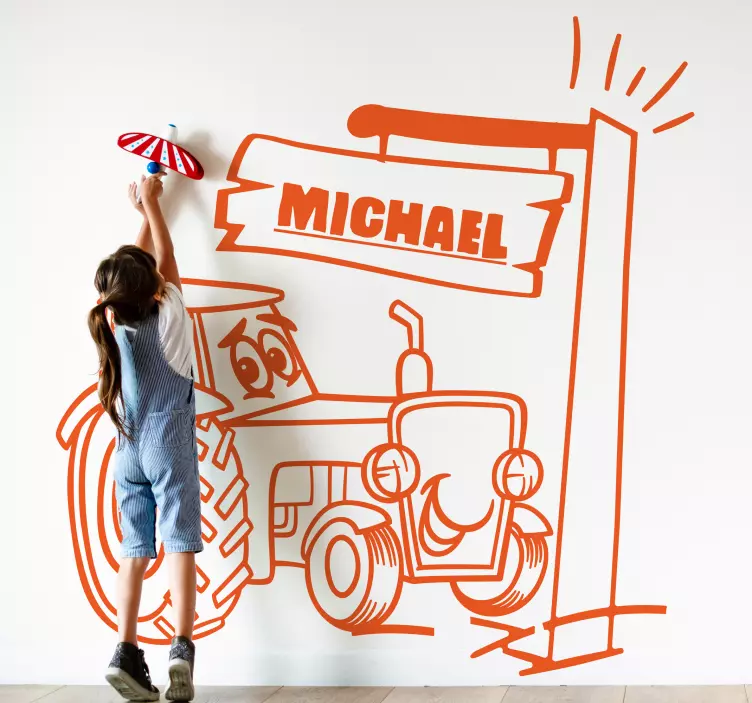 Breng een vleugje plezier en fantasie in de kinderkamer met onze Muursticker kinderkamer speelse tractor scene. Dit handgetekende ontwerp toont een schattige tractor die kinderen uitnodigt om hun verbeelding te gebruiken. De vrolijke kleuren en grillige vormen creëren een speelse atmosfeer die perfect is voor elke kinderkamer. Bovendien is het ontwerp aanpasbaar, waardoor je het kunt personaliseren met een unieke tekst voor jouw kind. Laat de creativiteit stromen met deze gepersonaliseerde muursticker!