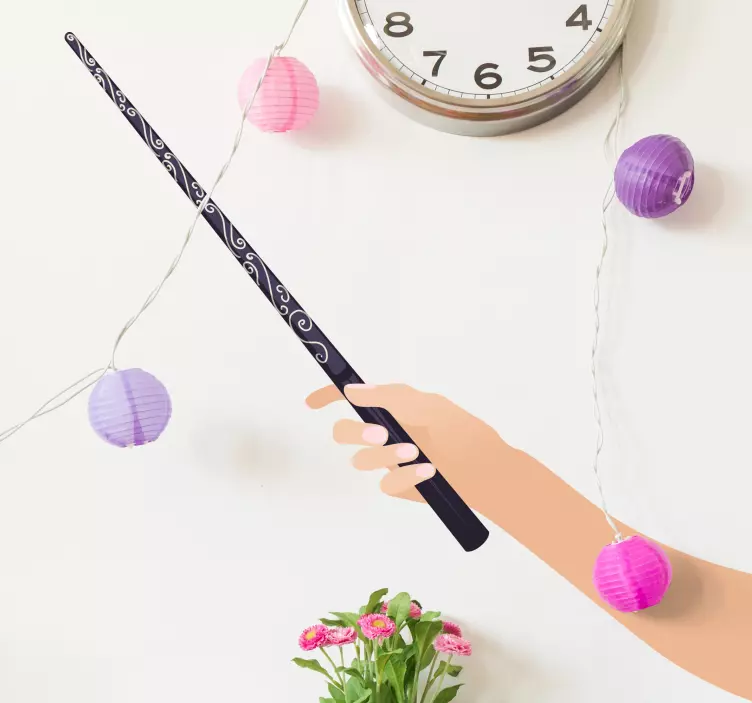 Breng een vleugje magie in de kinderkamer met onze Muursticker kinderkamer toverstok kunst. Dit prachtige ontwerp toont een toverstok die sprankelt met magie en fantasie. Een hand die de grillige elementen van de kindertijd vastlegt, zorgt ervoor dat de kamer van uw kind een speelse en magische sfeer uitstraalt. Laat de verbeelding van uw kinderen tot leven komen met dit unieke kunstwerk!
