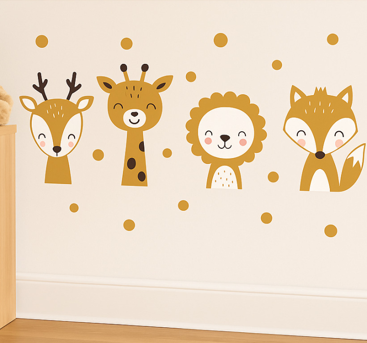 Muursticker schattige dierenkoppen