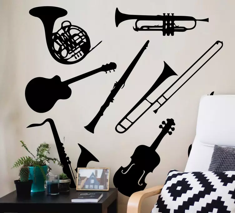 Ontdek de prachtige Muziek sticker muziekinstrumenten collectie, een unieke set die de schoonheid van muziek en kunst in uw ruimte brengt. Deze grafisch ontworpen stickers tonen elegante silhouetten van verschillende muziekinstrumenten en zijn perfect voor elk decor. Maak uw muren levendig met een muzikaal thema dat het gevoel van een orkest in uw huis oproept!