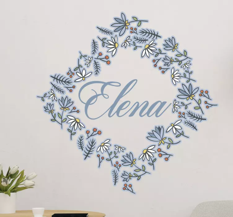 Naamsticker bloemen grijs