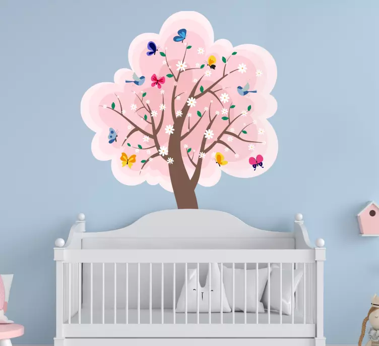 Breng de schoonheid van de natuur in uw huis met onze Natuur muursticker bloeiende boom scene. Deze prachtige illustratie van een bloeiende boom, omringd door kleurrijke bloemen en vrolijke vlinders, creëert een levendige lentemood. De roze tinten en de rijke kleuren zorgen ervoor dat elke ruimte opfleurt en een gevoel van frisheid en vreugde biedt!