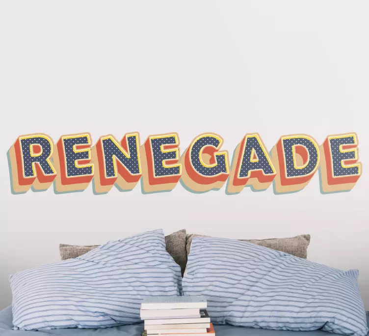 Ontdek de unieke Quotes sticker renegade lettering, een opvallend product dat jouw ruimte een speelse en stoutmoedige uitstraling geeft. Dit ontwerp is een perfecte mix van urban typografie met een kleurrijke overloper die de aandacht trekt en een statement maakt. De combinatie van gedurfde lettertypes en levendige kleuren zorgt ervoor dat deze sticker niet alleen een decoratief element is, maar ook een bron van inspiratie in je interieur.