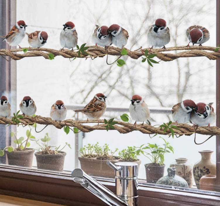 Referentienummer: A53281Breng een vleugje natuur in uw huis met onze Raamsticker huismussen op takken. Deze prachtige sticker toont schattige huismussen die zich elegant nestelen op takken, perfect voor het decoreren van ramen en glas. Het ontwerp is uitgevoerd in levendige kleuren met een satijnen afwerking die schitteringen voorkomt, waardoor u optimaal van het uitzicht kunt genieten zonder hinderlijke reflecties. De sticker is gemaakt van hoogwaardige materialen en heeft een lange levensduur van circa 8-10 jaar, waardoor het een duurzame keuze is voor elke ruimte!