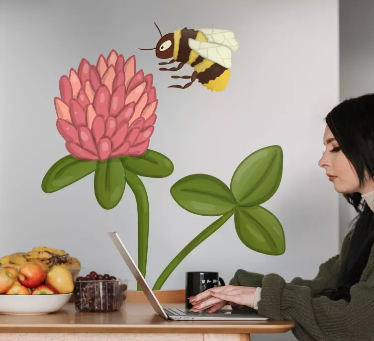 Breng de natuur in huis met onze prachtige Sticker bloemen en planten bij op bloem. Dit ontwerp is een vrolijke weergave van een kleurrijke bloem, delicate bladeren, en een schattige bij die samen de essentie van de natuur vastleggen. De insect en flora elementen voegen een speelse touch toe, waardoor elke ruimte een frisse en levendige uitstraling krijgt!