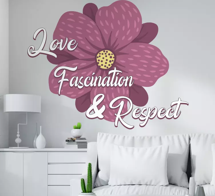 Referentienummer: A48132Dit ontwerp bevat een prachtige bloem samen met een oprechte boodschap die liefde, fascinatie en respect benadrukt. De gedurfde typografie en bloemachtige elementen creëren een warme sfeer, waardoor het perfect is om persoonlijke ruimtes te verfraaien met positieve affirmaties.