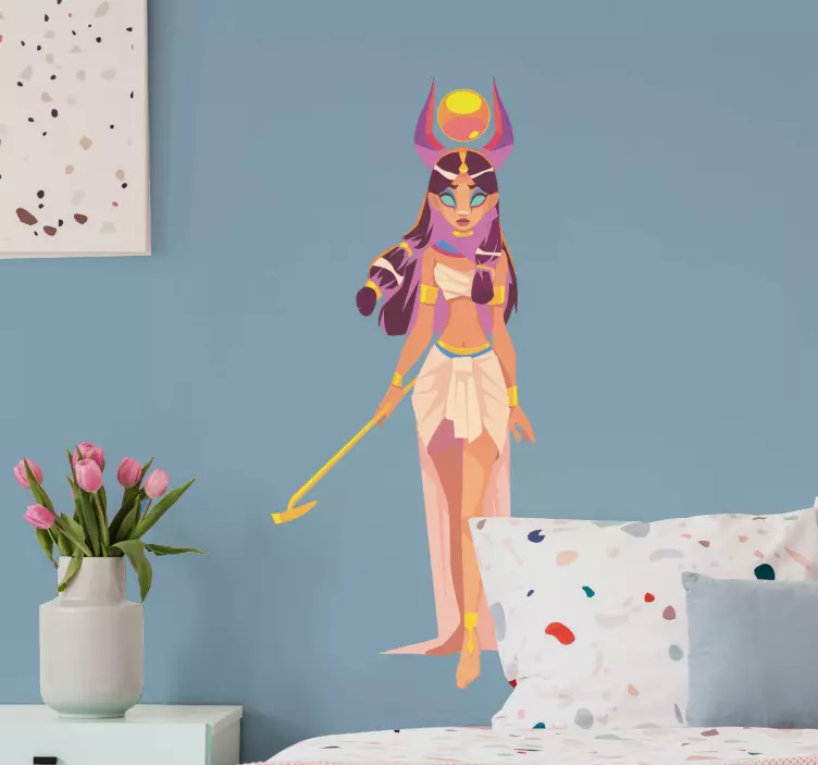 Breng de mystiek van het oude Egypte tot leven met onze Sticker figuren mythische egyptische figuur. Dit ontwerp toont een prachtige godin in een kleurrijke cartoonstijl die de rijke mythologie en cultuur van het oude Egypte weerspiegelt. Dit vrouwelijke personage straalt fantasie uit en voegt een sprankje magie toe aan elke ruimte!