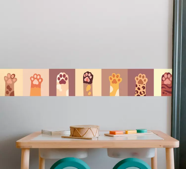 Breng vreugde in uw huis met onze Sticker kat en hond vrolijke pootafdrukken. Dit ontwerp is een speelse combinatie van kleurrijke patronen die de speelse schaduw van de poten van uw favoriete huisdieren weergeeft. De vrolijke cartoonachtige stijl met een levendige grens maakt het een feest voor het oog. Of je nu een tegelwand of een ander glad oppervlak wilt versieren, deze dieren sticker is de perfecte manier om een vleugje charme en persoonlijkheid toe te voegen aan je leefruimte!
