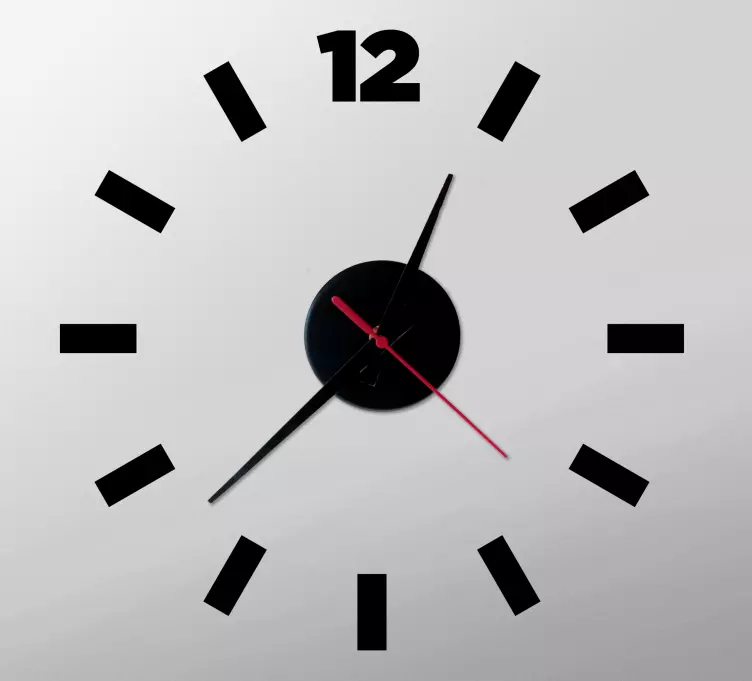 Breng moderniteit en stijl in uw interieur met onze Sticker klok moderne minimalistische klok. Dit ontwerp heeft een strakke uitstraling met zijn zwarte en rode kleuren, perfect voor elke ruimte. Met een minimalistisch ontwerp en subtiele strepen die de twaalf uuraanduidingen markeren, is deze kloksticker niet alleen een functioneel item maar ook een prachtig kunstwerk dat de tijd op een stijlvolle manier toont.