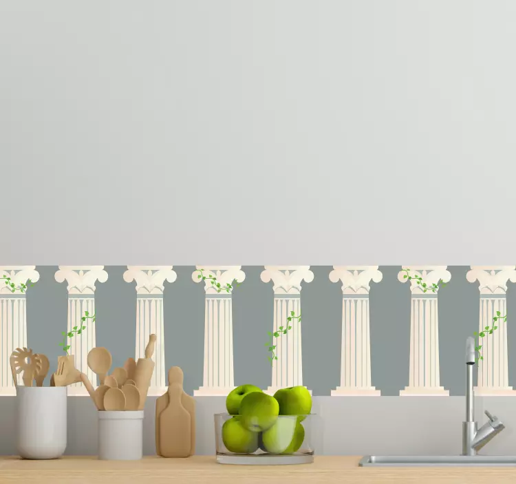 Breng een vleugje elegantie in uw interieur met de Stickerrand klassiek kolom accent. Dit prachtige ontwerp, geïnspireerd door de Griekse architectuur, combineert de schoonheid van kolommen met een verfijnde grens en een speelse liaan. Het is perfect voor elke keuken of interieurstijl, waardoor het een ideale keuze is voor wie op zoek is naar een stijlvolle en unieke decoratie!
