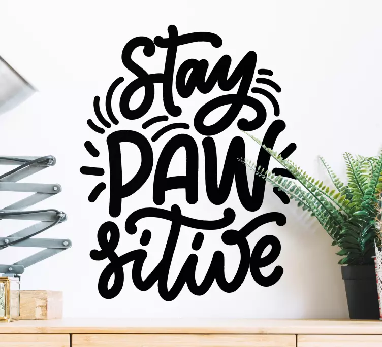 De tekst sticker blijf pootief quote is een uitstekende keuze voor het decoreren van uw leefruimte. Deze sticker is niet alleen esthetisch aantrekkelijk, maar ook een dagelijkse herinnering om positief te blijven. Het gebruik van deze sticker voegt karakter toe aan uw huis en inspireert iedereen die het ziet. Het past perfect in een huis met huisdieren, waar de liefde voor je viervoeter centraal staat. Met zijn unieke ontwerp en vrolijke uitstraling is het een must-have voor elke hondenliefhebber!
