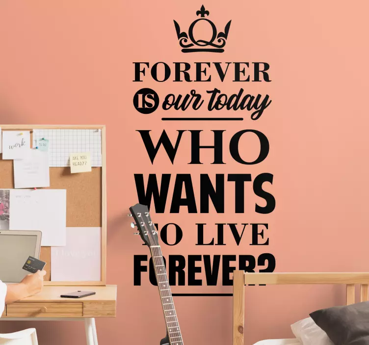 Tekst sticker wie wil er voor altijd leven