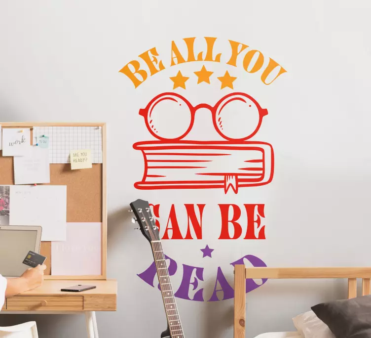 Verbeter de uitstraling van uw ruimte met deze coole ontwerp muursticker. Het handgetekende boek illustreert een leesbril en tekst en zal zeker een mooie decoratie zijn op elke muur, deur, meubels, laptop, enz. Onze stickers zijn duurzaam, kreukvrij en geven geen luchtbel effect wanneer ze worden aangebracht.