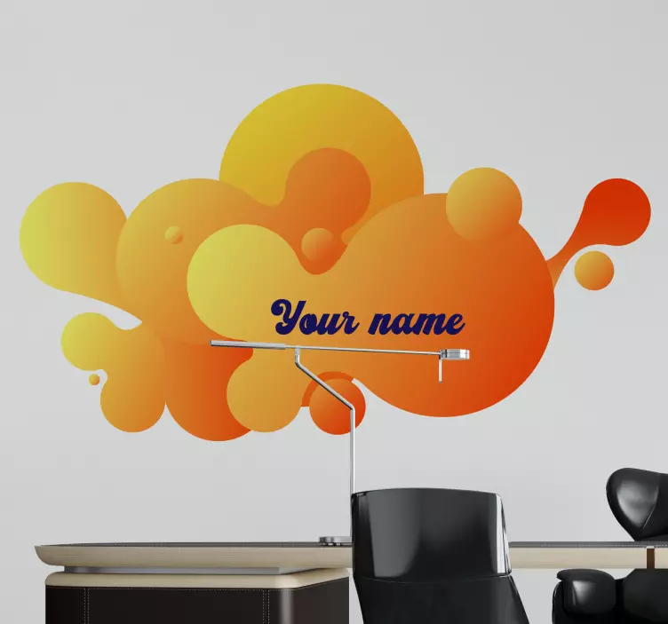 Breng kleur en energie in jouw ruimte met onze Urban sticker kleurrijk bubbeldesign. Het ontwerp is een prachtige mix van abstracte vormen met een verloop van levendige kleuren die doen denken aan vloeistof. Deze geometrische kunst laat zich eenvoudig personalizeren met jouw naam, waardoor het een aanpasbaar stuk wordt dat perfect aansluit bij jouw stijl. Het moderne en jeugdig design maakt het ideaal voor zowel woonruimtes als werkplekken.