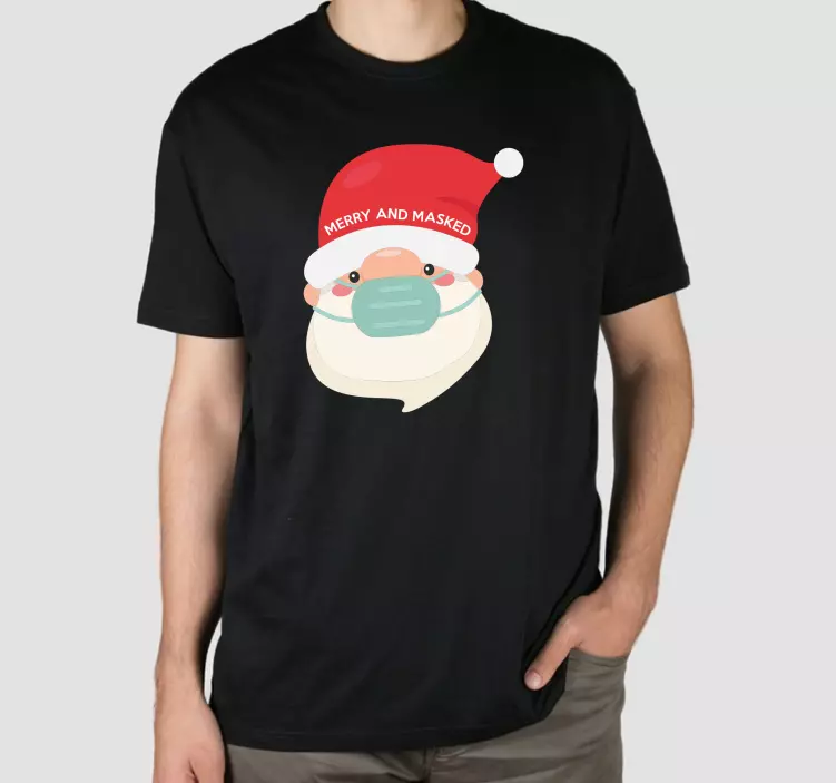 Ontdek ons unieke Kerst t-shirt vrolijke kerstman met mondkapje, een perfecte combinatie van feestelijke stijl en humor! Dit ontwerp toont een vrolijke kerstman met een gezichtsmasker, wat het een grappige toevoeging maakt aan je vakantieoutfit. De levendige kleuren en speelse tekst brengen meteen de Kerstmis sfeer naar boven en zorgen ervoor dat je opvalt tijdens elk feestelijk evenement. Met deze kerstman in een gemaskerde stijl ben je helemaal klaar voor de feestdagen!