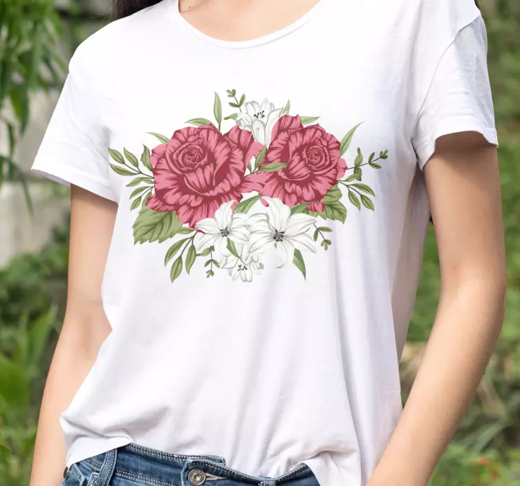 Referentienummer: T4320Dit ontwerp bevat bloeiende rozen en lelies, die schoonheid en elegantie symboliseren. De levendige kleuren springen in het oog en creëren een opvallende visuele aantrekkingskracht. Perfect voor casual wear, toont het een harmonieuze mix van bloemenelementen, wat het een ideale keuze maakt voor iedereen die een frisse, opbeurende sfeer wil uitstralen.
