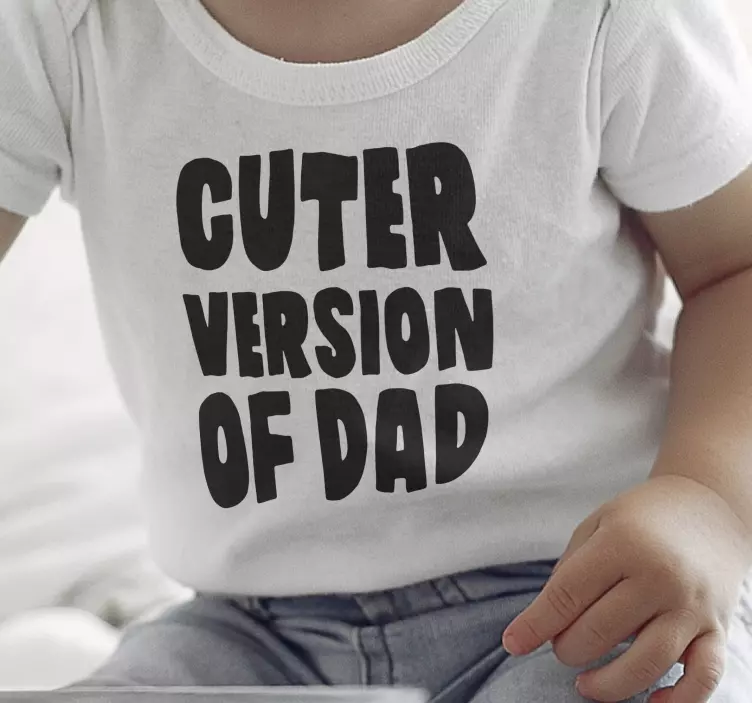 Referentienummer: T5401Dit speelse ontwerp bevat gedurfde, gestileerde tekst die 'Cuter Version of Dad' zegt. De zwarte letters contrasteren met een lichte achtergrond, wat zorgt voor een leuke en aantrekkelijke uitstraling voor een kinderkledingstuk. Ideaal om familiebanden te vieren met een humoristische twist.