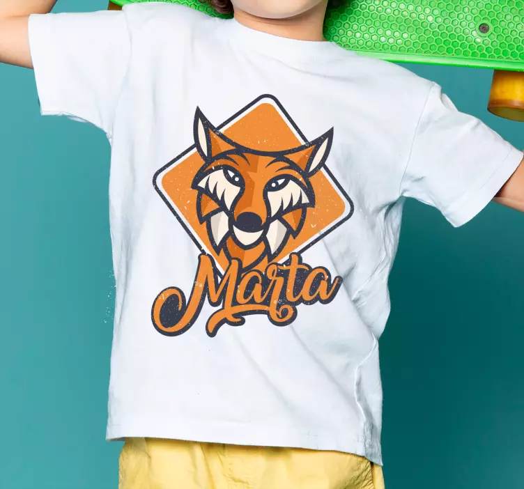 Referentienummer: T4980Dit boeiende ontwerp bevat een opvallende vosillustratie met gedurfde kleuren en speelse elementen, gepersonaliseerd met de naam 'Marta'. Perfect voor kinderen, het combineert plezier en creativiteit, waardoor elk stuk uniek en speciaal is.