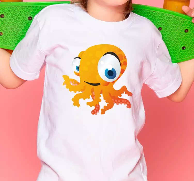 Maak kennis met ons Kinderen t-shirt vrolijke octopus karakter, een kleurrijke en speelse toevoeging aan de kindermode! Dit t-shirt is versierd met een schattige, cartoonachtige octopus die vrolijk en vriendelijk lijkt, perfect voor elke kleine avonturier. De illustratie is levendig en stimuleert de fantasie, waardoor het dragen van dit t-shirt een plezierige ervaring wordt voor elk kind.