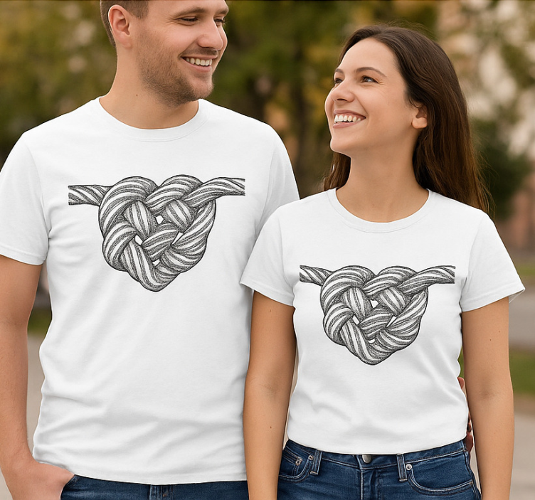 De Koppels t-shirts met hartvormige knoop zijn een geweldige keuze voor elk stel dat zijn liefde wil uitstralen. Of je nu een romantische date hebt of gewoon een gezellige dag samen doorbrengt, deze t-shirts maken elke gelegenheid speciaal. Het unieke ontwerp met hartvormige knoop voegt een speelse en liefdevolle touch toe aan jullie outfits. Geniet van elkaar en laat de wereld zien hoe sterk jullie band is met deze schattige t-shirts!