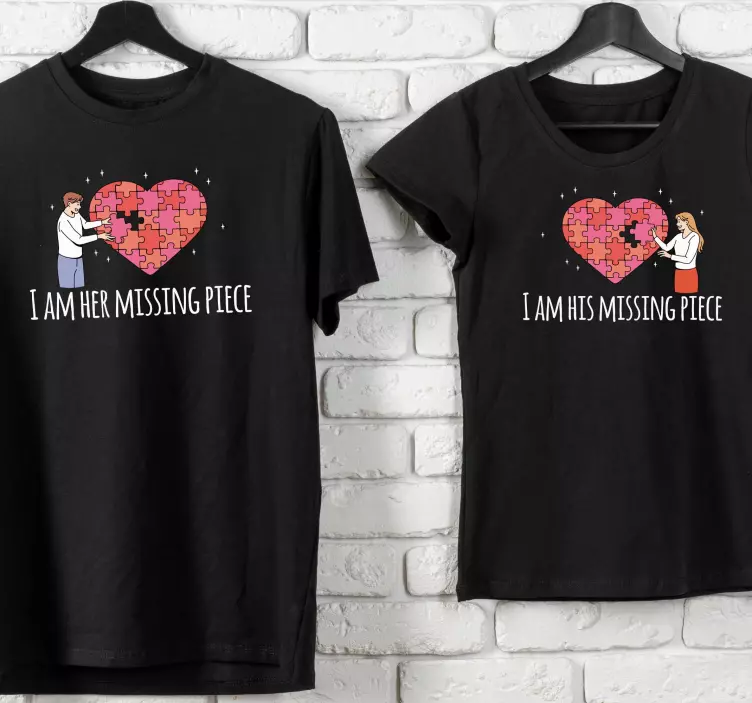 Maak kennis met ons unieke Koppels t-shirts puzzel hart verbinding, een prachtig ontwerp dat de liefde tussen twee mensen viert! Dit romantische t-shirt is een echte eye-catcher met een grafisch ontwerp dat een puzzelhart toont. Het gemiste stuk symboliseert de verbinding tussen een jongen en een meisje, perfect voor koppels die hun liefde op een grappige en creatieve manier willen uitdragen. Deze bijpassende t-shirts zijn niet alleen een modestatement, maar ook een bijzondere manier om je relatie te versterken.