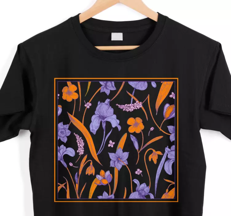Ontdek de schoonheid van ons T-shirt bloemenpatroon elegant! Dit unieke ontwerp is geïnspireerd op de pracht van de natuur en toont een sprankelende illustratie van kleurrijke krokussen en bloeiende bloemen in oranje en purper. De levendige afbeeldingen van planten en bloemkunst brengen een frisse uitstraling die perfect is voor elke gelegenheid. Dit t-shirt is niet alleen een mode-item, maar een echt kunstwerk dat je stijl naar een hoger niveau tilt!
