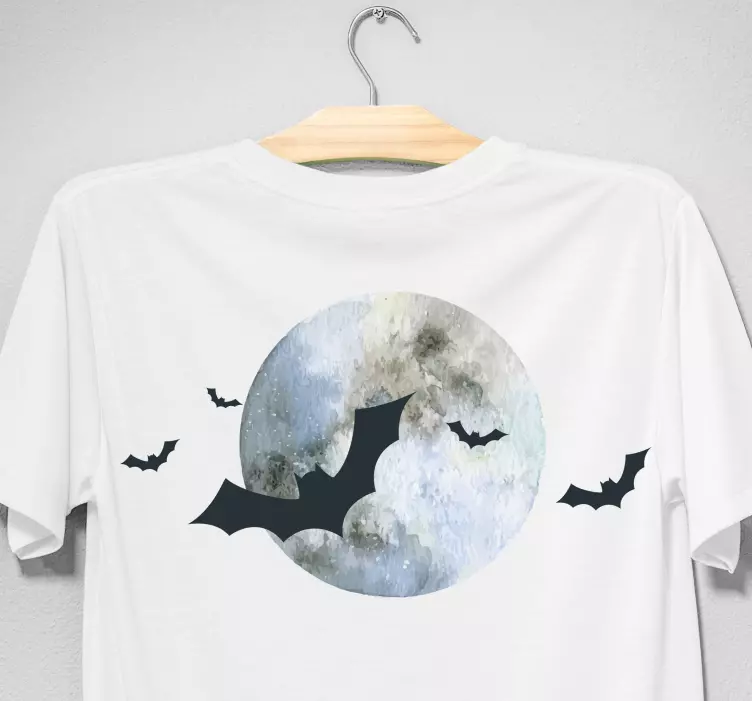 Referentienummer: T4751Dit ontwerp bevat een mystieke maan omringd door vliegende vleermuizen, die de essentie van Halloween belichaamt. Het kleurenpalet combineert donkere en lichte tinten, waardoor een griezelige maar boeiende sfeer ontstaat die perfect is voor feestelijke gelegenheden.