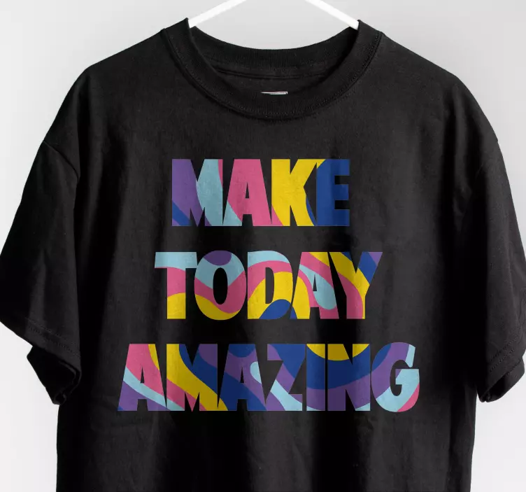 Referentienummer: T4900Dit levendige, motiverende stuk bevat de zin 'Make Today Amazing' in dynamische, kleurrijke typografie. De vetgedrukte letters springen eruit tegen een donkere achtergrond, waardoor het een opvallende uiting van positiviteit en inspiratie is die geschikt is voor verschillende gelegenheden.