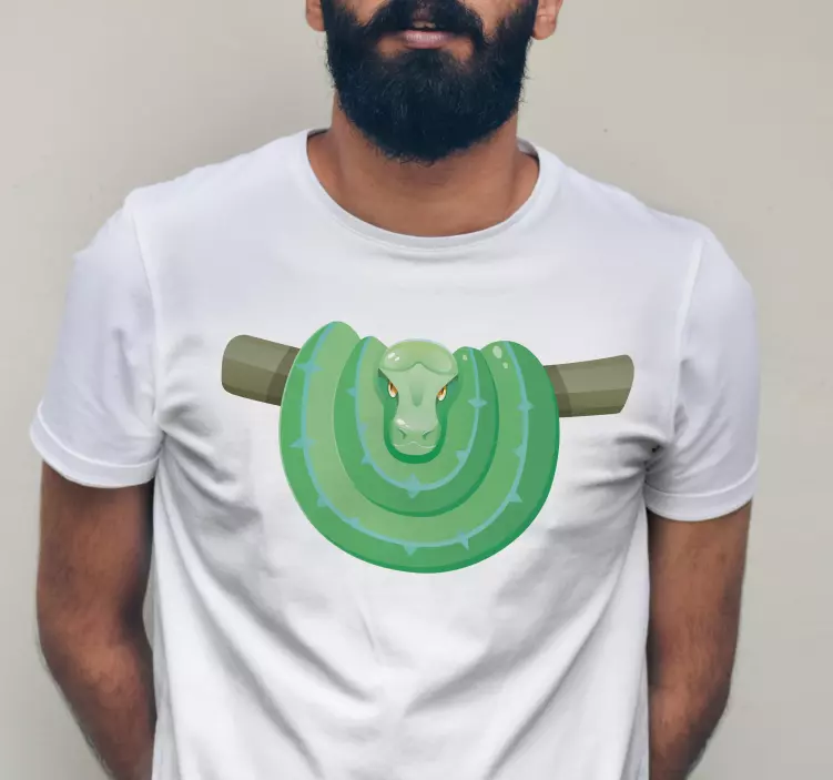 Dit t-shirt met groen slangenachtig design is een visueel spektakel dat je casual look naar een hoger niveau tilt! Met een levendige illustratie van een slang die sierlijk om een tak kronkelt, is dit ontwerp zowel stijlvol als uniek. De cartoonachtige afwerking maakt het een perfecte keuze voor iedereen die van een speelse, maar toch stylish uitstraling houdt. Dit t-shirt is de ideale aanvulling voor je garderobe en brengt een frisse, groene vibe met zich mee!