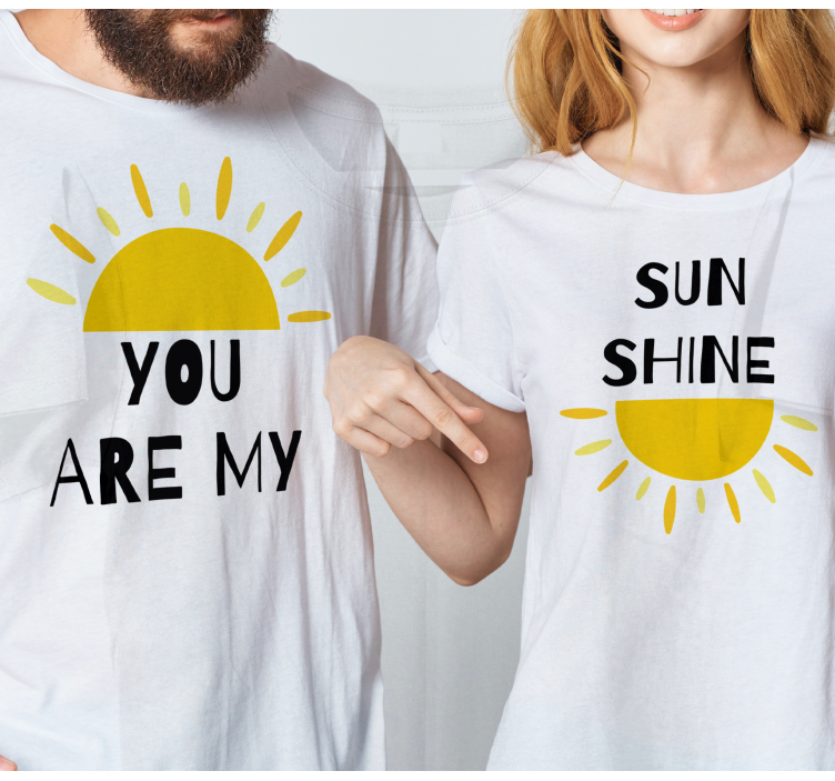 Referentienummer: T5107Dit charmante ontwerp toont een stel dat bijpassende tops draagt, versierd met vrolijke zonmotieven en warme, liefdevolle zinnen. De zonnige kleuren roepen gevoelens van vreugde en verbondenheid op, waardoor het een perfecte keuze is om liefde op een plezierige manier te uiten.