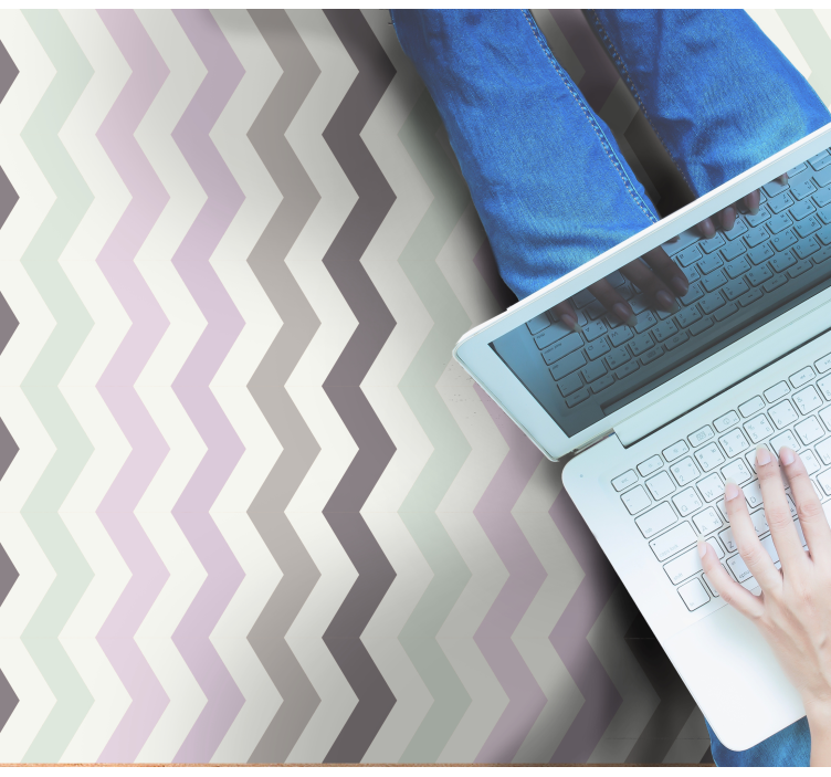 Referentienummer: R14762Dit ontwerp bevat een reeks chevronpatronen met verschillende tinten grijs en zachte pastelkleuren. De golvende lijnen creëren een dynamisch uiterlijk, terwijl de interactie van lijnen diepte en visuele interesse toevoegt, waardoor het een opvallende keuze is voor elke ruimte.