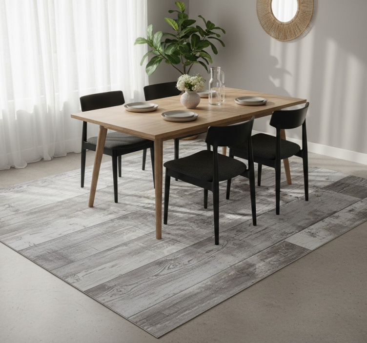 Vinyl tapijt eetkamer grijze houten planken