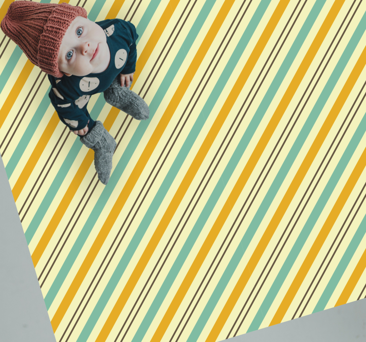 Geef je interieur een speelse en levendige uitstraling met ons Vinyl tapijt met strepen lively striped concept. Dit ontwerp kenmerkt zich door zijn opvallende strepen in een diagonaal patroon, waarbij de kleuren geel en blauw samenkomen in een dynamisch en energiek geheel. Het gestreepte ontwerp voegt een vrolijke touch toe aan elke ruimte, waardoor je je meteen thuis voelt!