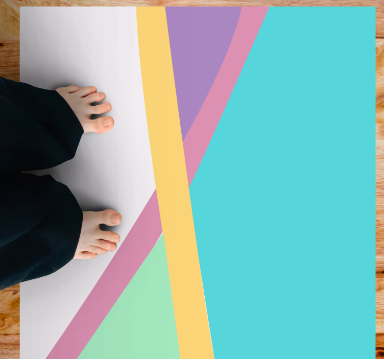 Dit vinyl tapijt modern kleurrijke abstracte lagen is een ware blikvanger in elk interieur. Het ontwerp bestaat uit een speelse combinatie van kleurrijke strepen en geometrische vormen die samen een abstracte en dynamische uitstraling creëren. De groene en blauwe pastelkleuren brengen een frisse energie in uw ruimte, waardoor het perfect is voor zowel moderne als klassieke decoraties.