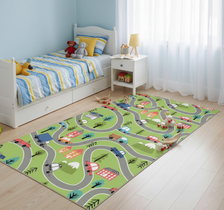 Het gebruik van Vinyl tapijt slaapkamer kleurrijke straat met raceauto's vinyl tapijt slaapkamer in uw interieur is een geweldige manier om een speelse en levendige sfeer te creëren. Dit tapijt voegt niet alleen kleur en karakter toe aan uw slaapkamer, maar het is ook functioneel en praktisch. De antislip eigenschap zorgt ervoor dat het tapijt op zijn plaats blijft liggen, wat het veilig maakt voor kinderen en huisdieren. Bovendien beschermt het uw vloer tegen krassen en slijtage, waardoor het een slimme investering is voor elke woning!