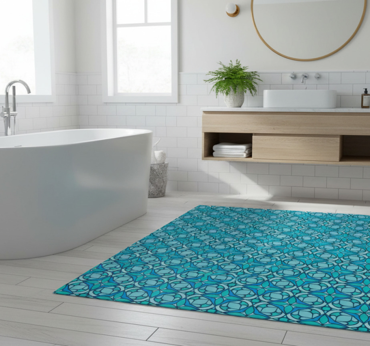 Het Vinyl vloerkleed badkamer blauwe wandbekleding is niet alleen een praktische keuze, maar ook een slimme decoratieve toevoeging aan uw badkamer. Dit tapijt combineert stijl met functionaliteit en biedt een comfortabele ervaring onder uw voeten. Het is een perfecte manier om kleur en textuur toe te voegen aan uw ruimte, waardoor uw badkamer een frisse uitstraling krijgt. Bovendien beschermt het uw vloer en draagt het bij aan een warme sfeer die uitnodigt tot ontspanning!