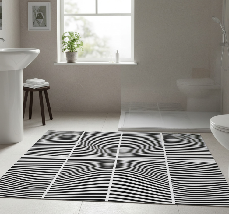 Een vinyl vloerkleed badkamer vierkanten met golven is de ideale keuze voor diegenen die een unieke decoratie willen toevoegen aan hun badkamer. Het is niet alleen stijlvol, maar ook functioneel, waardoor het een must-have is voor elke moderne ruimte. Dit vloerkleed kan de algehele uitstraling van uw badkamer transformeren met zijn aantrekkelijke ontwerp, en tegelijkertijd biedt het comfort en bescherming aan uw vloer. Laat uw badkamer stralen met deze prachtige toevoeging!