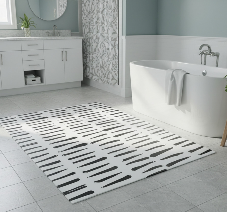Het vinyl vloerkleed badkamer onregelmatig streepjespatroon is de perfecte keuze voor elke badkamer. Het voegt niet alleen stijl toe aan de ruimte, maar biedt ook comfort en functionaliteit. Dankzij het antislipontwerp blijft het vloerkleed stevig op zijn plaats, wat zorgt voor een veilige omgeving. Bovendien is het gemakkelijk schoon te maken en biedt het een uitstekende bescherming voor uw vloer. Maak uw badkamer een plek van ontspanning en plezier!