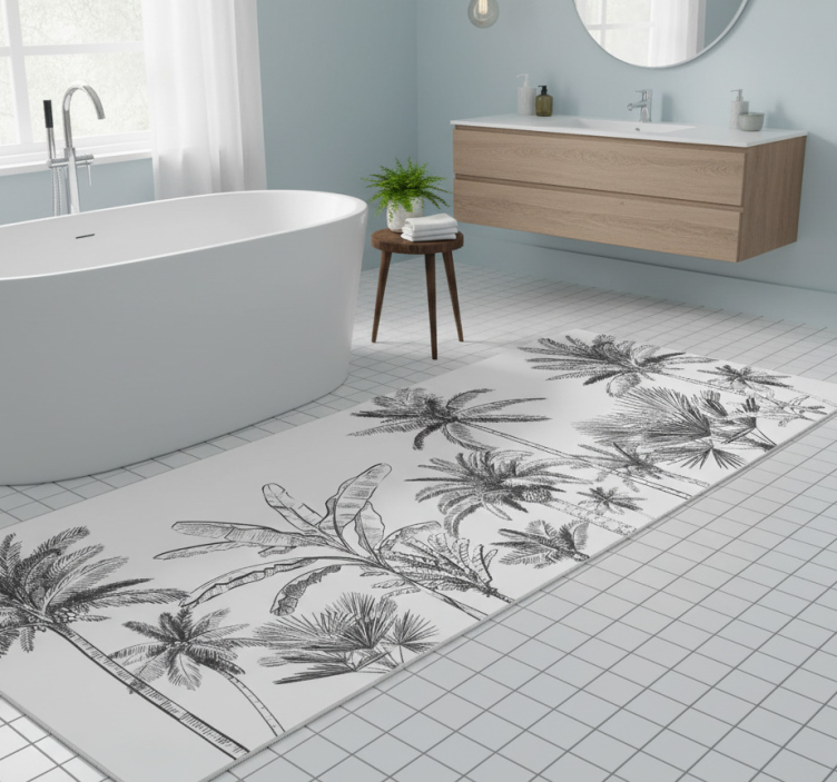 Vinyl vloerkleed badkamer schets van tropische bomen
