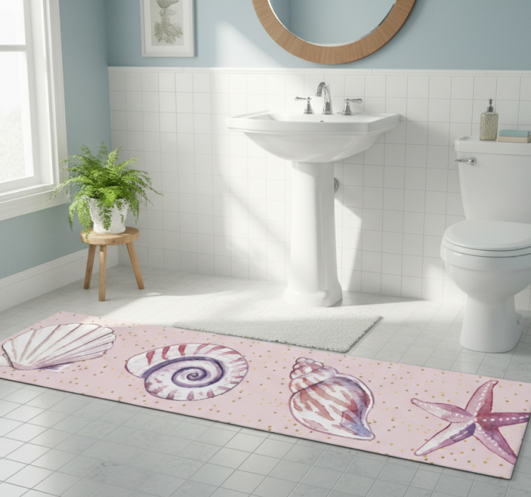 Het Vinyl vloerkleed badkamer zeeleven rand vinyl vloerkleed badkamer is de perfecte keuze voor diegenen die hun badkamer willen opfrissen. Met dit vloerkleed creëert u een serene en ontspannen sfeer die doet denken aan een dag aan het strand. Dit tapijt beschermt uw vloer terwijl het een vrolijke uitstraling geeft, en het is ook eenvoudig te onderhouden. Transformeer uw badkamer in een oase van rust en stijl!
