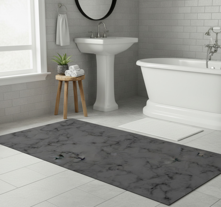 Een Vinyl vloerkleed badkamer zwarte marmer textuur vinyl vloerkleed badkamer is de ideale keuze voor wie op zoek is naar een stijlvolle en duurzame oplossing voor badkamerdecoratie. Dit tapijt voegt niet alleen een luxe uitstraling toe aan uw badkamer, maar biedt ook praktische voordelen. Het is eenvoudig te onderhouden en aan te passen aan elke inrichting, waardoor het een veelzijdige toevoeging is die uw badkamer naar een hoger niveau tilt. Laat uw badkamer stralen met dit prachtige design!