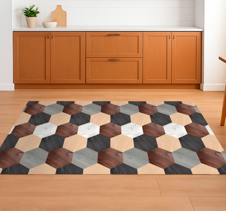 Het vinyl vloerkleed keuken gemengde houten hexagons is een prachtige aanvulling voor elke keuken. Met zijn unieke hexagonale ontwerp dat de uitstraling van gemengd hout nabootst, voegt het een vleugje natuur en elegantie toe aan uw interieur. Dit vloerkleed is niet alleen visueel aantrekkelijk, maar ook zeer functioneel. Het biedt een warme en uitnodigende sfeer, waardoor het de perfecte keuze is voor een gezellige kookomgeving. Met zijn stijlvolle uitstraling is het een slimme keuze voor wie zijn keuken wil verfraaien!
